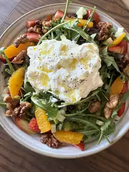 🥗 Stracciatella Salad – Fresh vegetables, fruits, walnuts, Venezuela sauce and stracciatella cheese. They go together so well.