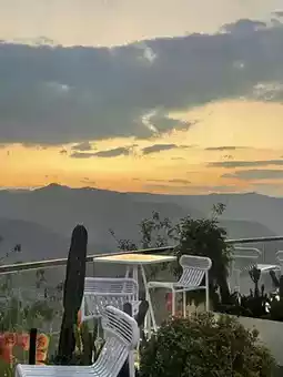 • Night view: Café rooftop for city lights + stars.