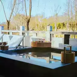 The hotel features an elegant design with classical elements such as courtyards, ponds, and rockeries. The hotel is located right next to Dayangwan Lake, offering a wide view. Each room has a private hot spring pool with water sourced from Dayangwan, known for its high quality. The hot spring water temperature is 62°C. The rooms are spacious, and some come with a courtyard, allowing you to enjoy the lake view while soaking in the hot spring. You can also order afternoon tea. ☕