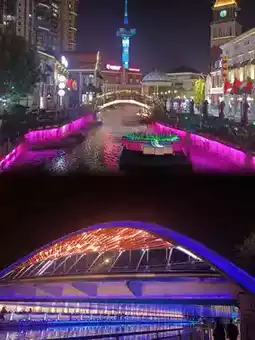 - Ancient buildings, lanterns lit up in the evening, very romantic