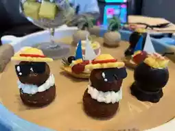 Mini coconut trees topped with coconut flakes🌴 are illegally cute, cream puffs wearing sunglasses look like beach vacation sprites—each bite is a flavor explosion!