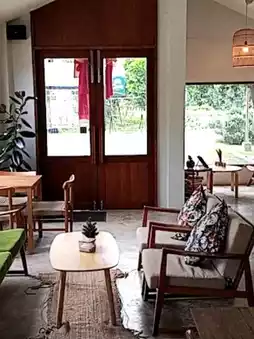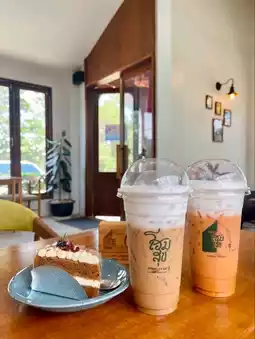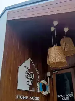 Homesookcafe in Kalasin Province is a cafe that truly lives up to its name, boasting a warm and friendly atmosphere. The shop's minimalist decor emphasizes white and brown tones, blending seamlessly with the surrounding nature, creating a relaxing, homey atmosphere.