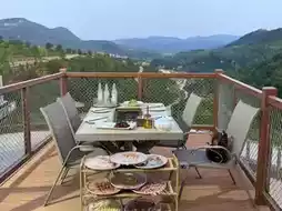 🌿Wooden cottages blend into the forested mountains, with emerald peaks and drifting clouds right outside your window. Wake up to birdsong in the morning!