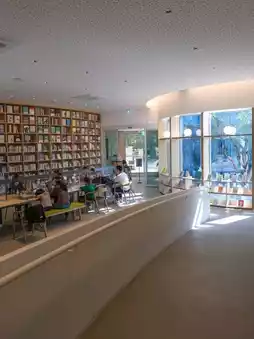 In the season of autumn, when the sky is clear, let's enjoy the leisure of reading in a library that embraces architectural beauty and nature.