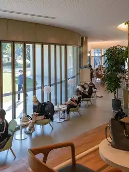 This place catches the eye with its graceful curved exterior built along the lawn line, but once you step inside, you will discover an even more wonderful space where nature, rest, and people come together.