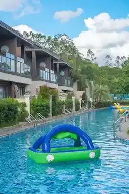 In the evening, we stayed at DS Hot Spring Resort Hotel. We enjoyed the hot spring in the private pool in our room. The private pool, mahjong table, and refrigerator were all available. The swimming lane was right outside the door. The holiday atmosphere was perfect!