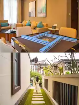 ✔️ The private courtyard has a private hot spring pool ♨️, and the swimming lane is right outside the door, which is very convenient. Families can book a whole villa for the New Year 🎉