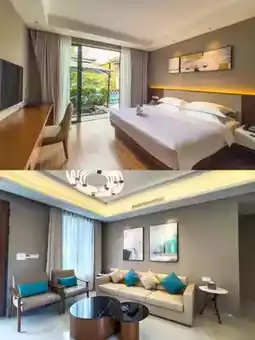 Waterfront suite, one bedroom, one living room, two bathrooms 🛁 Courtyard hot spring pool and a variety of one-stop food, drink, and entertainment projects 👇