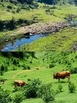 The ten thousand mu meadow is like a huge green velvet carpet, with cattle grazing leisurely