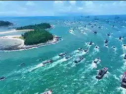 We arrived just in time for the 22nd South China Sea Fishing Festival. At the sacrificial ceremony on the fishing port docks, Tanka fishermen dressed in traditional attire performed ancient rituals to pray for a bountiful harvest. The evening's fishing village feast was even more astonishing—the 2-kilometer-long Haibin Road pedestrian street was lined with nearly a thousand tables of seafood feasts, buzzing with excitement. Freshly steamed mudflat fish, crispy and fragrant salt-and-pepper mantis shrimp, and local snacks like Spanish mackerel fish balls and fried rice cakes—each bite felt like swallowing the vastness of the ocean. At noon the next day, as the fishing ban was officially lifted, drones captured the epic sight of a thousand ships setting sail: steel-hulled fishing boats plowed through the emerald waves, white foam churning, as the fleet sailed majestically into the open sea. A child pointed at the fleet and cheered, "They're going to bring back the ocean's treasures!"