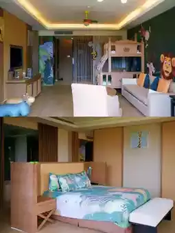 • The room facilities are top-notch! Not only are there kids’ toiletries and little slippers, but also fun bunk beds that kids love climbing up and down, making bedtime feel like a game of adventure haha 🤭. There are also little plush toys and cartoon pillows creating an immersive playful space, and even the desk is designed at a child’s height so kids can enjoy “vacation-style play” right in the room 🧸.