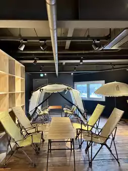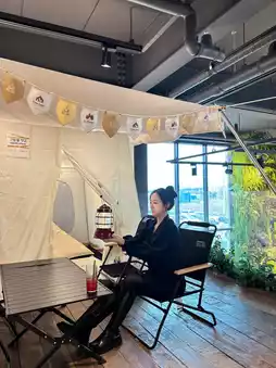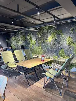 I visited an indoor 'camping ground cafe' that brings nature inside.