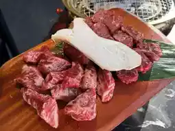 The side dishes served include homemade wasabi mushroom sauce, spicy soy sauce, and wine-fried sea salt, all of which paired excellently with the meat.
