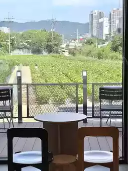 Krkr Cafe, located in the alley behind Starbucks Goeup DT in Goeup-dong, Yangju City, is a cozy and stylish space with a clean black-toned exterior and a warm wood-centered interior. The view of the fields through the large windows is impressive, and the high ceilings and spacious seating arrangement create a comfortable atmosphere.