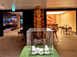 The store itself functions as a gallery where you can appreciate artwork. Paintings, sculptures, NFT artwork, and installations by domestic and international artists are displayed throughout the store, including on the walls, pillars, and ceilings. This multi-cultural space allows you to enjoy coffee while appreciating art and relaxing in nature. It also offers exclusive drinks and food options.