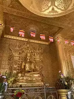 🙏🏻The pagoda's interior features a spiraling, maze-like walkway, with walls lined with gleaming gold leaf and partitioned by glass panels. Inside, artifacts that were once housed in the original pagoda before its reconstruction are on display.