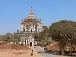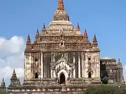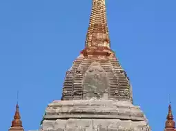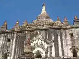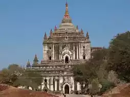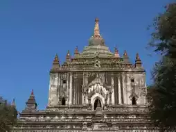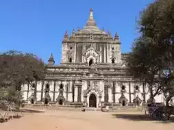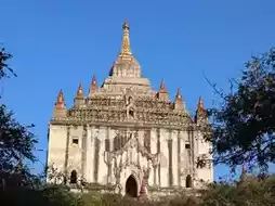 This nice pagoda is Within 2 km of Ananda Temple on the other side of the Tharabar Gate, is the majestic Thatbyinnyu Pagoda – towering above other nearby pagodas, which is visible from much of the Bagan plains. The square base of the temple is a Brick structure set on a low platform with three receding terraces on top of both the first and second storeys, and each terrace has a small stupa on each of its four corners. There were beautiful paintings made by the temple sellers. The stone painting drew most of our attention – the man crushes stone and makes painting using the stone powder.
