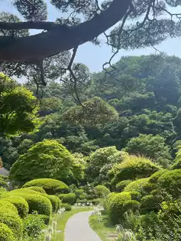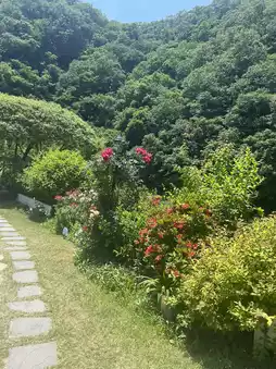 The well-maintained garden features a stream, providing a cool and serene environment. There is also an Italian restaurant on-site, making it a great place for a meal.