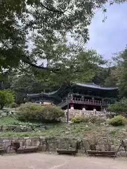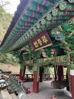 Standing before the majestic Daeungjeon Hall, I felt the depth of time, and the large bell hanging from the bell tower added to the tranquility of the mountain temple. The view of Yongmunsa Temple, surrounded by autumn foliage, was truly like a painting from an Oriental painting. It was a precious moment to experience nature, history, and peace all in the midst of autumn.🍂