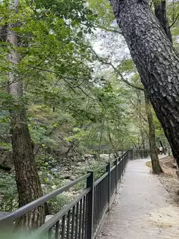 Strolling through Yongmunsan Park, I found myself enjoying a beautifully designed walking trail that made every step a pleasure. The trail is flanked by lush trees and streams, allowing you to fully immerse yourself in the fresh air and the scent of nature. In autumn, the trees adorned with vibrant foliage line the path, making it feel like walking through a picturesque painting.๐ฎ