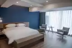 Standing at the hotel’s entrance, you can see the teaching building of Shanxi Institute of Technology to your left, with the sound of morning readings carried by the breeze. A ten-minute walk to your right leads to Wanda Plaza, whose glass facade reflects the bustling daytime energy. Situated at a prime intersection, this location feels tailor-made for travelers: students rushing to early classes can make it on time, business professionals heading to meetings can depart with ease, and shopping enthusiasts can slip on canvas shoes and dive straight into the commercial district.