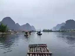 Bamboo rafts are traditional bamboo-made vessels. Visitors can enjoy a leisurely water journey on the Yulong River, experiencing the local traditional mode of transportation.