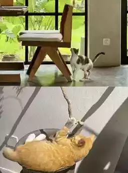 5️⃣ In the evenings, there's a bonfire on the lawn and movie screenings. Since it's hot now and there are mosquitoes, the hotel has five adorable cats and a corgi, all super friendly. We could pet the cats and play with the dog, haha. It was a very heartwarming scene!