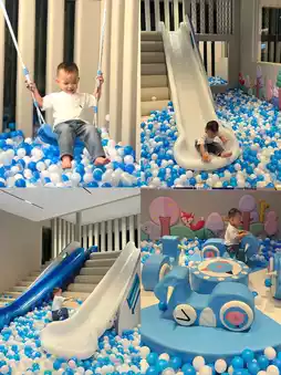 I booked a super large family room with a slide 🛝 and a building block table. On the first floor, there's a large ball pit and slide that kids love, as well as a swing and cute bunnies 🐇, which really frees up parents~
