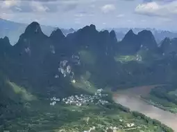 Once at the summit, all the struggle is quickly forgotten. The panoramic view from the top of Da Mian Mountain is breathtaking. You can see the stunning karst landscape of Yangshuo stretching far into the distance. The rolling limestone peaks, the winding Li River, and the scattered villages below create a scene that feels almost surreal. It is the kind of view that photographs can barely capture and that stays in your memory long after the descent.