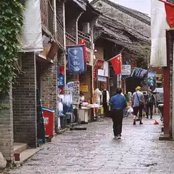 Xingping Ancient Town boasts over 1,700 years of history and is home to many ancient streets, bridges, opera stages, and temples. The town itself is not very large, but the main attraction—the location featured on the back of the 20 RMB banknote—is not within the main streets of the town. You need to head further out to the natural scenic area. To reach it, we rented an electric bike for the day, as walking would have been too far.
