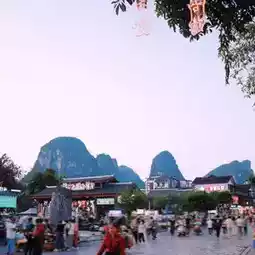 West Street is located in the center of Yangshuo County, and it is very convenient for food, accommodation and transportation. There are bars, restaurants and coffee shops of various styles in West Street. There are relatively few tourists during the day and it is relatively quiet. It gradually becomes lively in the evening. At night, the lights are on, the night view is beautiful, and the streets are crowded with pedestrians.