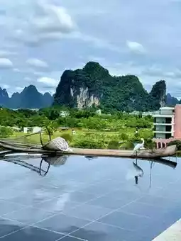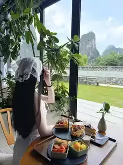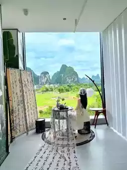 The moment I checked into this mountain-view room in Yangshuo, I was speechless by the beauty of this floor-to-ceiling window 😭 With afternoon sunlight streaming in, sitting on the rocking chair while enjoying fruits and tea—pure bliss bubbling up! (The first thing upon arrival was receiving a welcome fruit platter) So thoughtful, I could love this hotel forever!