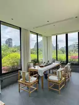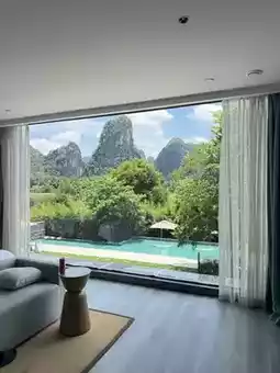 The floor-to-ceiling windows in my mountain-view room are massive—waking up to karst peaks⛰️ feels like living in a dynamic ink painting! Every phone snap turns out insta-worthy.