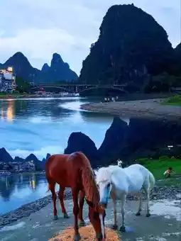 Yangshuo West Street is the most famous and bustling street in Yangshuo County, Guilin, boasting a history of over 1,400 years. It is located near the picturesque Li River. We stayed right next to West Street, and after dinner, we naturally headed to the riverside to enjoy the stunning sunset over the Li River.