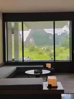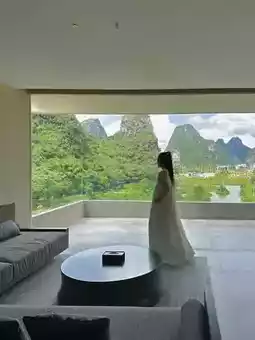 The pool mirrors the misty rain of the Li River, facing the karst peaks. Whether swimming in the morning or lounging in the afternoon, every moment is a picturesque scene. As night falls, the shimmering water reflects the stars, immersing you in the poetic charm of Yangshuo.