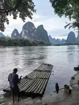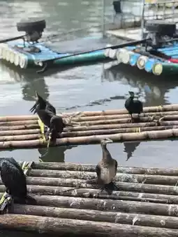 There were plenty of bamboo rafts and cormorants🦅 around, and for a small fee, you could take photos with them—the results were incredibly atmospheric~