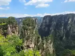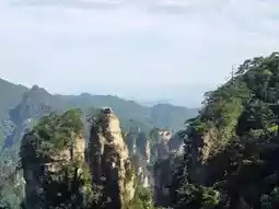 - Zhangjiajie's majestic mountains loom over us like gigantic sculptures.