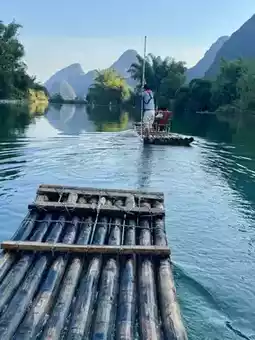 Yulong River – A peaceful tributary ideal for bamboo rafting.