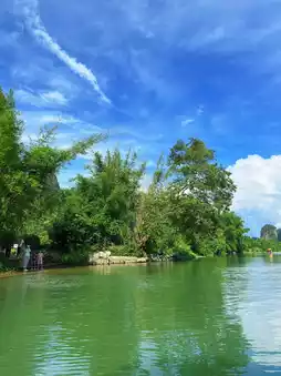• Highlights: Bamboo rafting, riverside countryside, and reflections of distant mountains.