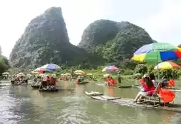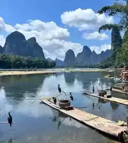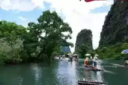 Photography Holy Land: Water reflections, lush green mountains, bamboo rafts passing by – every frame is a stunning shot! 📸