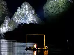 Snag a shot of the glowing river with the karst mountains in the background before the show starts. During the performance, try to capture the wide view for the breathtaking choreography against the mountain silhouettes.