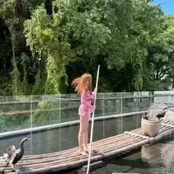 But the true highlight lies outdoors. Glide across the water on a bamboo raft, accompanied by cormorants, as if stepping right into the scene from the 20-yuan note. Stand on the glass platform, where the karst peaks unfold before your eyes, and the reflections of blue skies and green trees compose a living canvas. Slip into a bright-colored swimsuit, and you’ll capture stunning, “immersed-in-the-painting” photos in an instant.