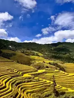 The countryside has beautiful trails through rice paddies, villages, and caves.