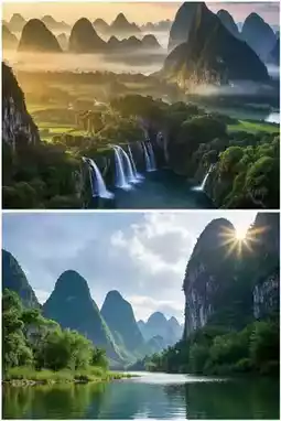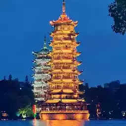 After enjoying Guihai Qinglan, follow my route to explore Guilin city and get all the highlights in one day! First, rush to Elephant Trunk Hill, enter through Gate 3 and exit through Gate 2 to save energy and avoid detours, and best of all, it’s free! In the evening, go to the Sun and Moon Twin Towers Park. After 7 PM, the "Sun and Moon Shine Together" night view lights up, with the golden and silver towers reflecting in the water—ten times more beautiful than during the day! Finally, head to Zhengyang Pedestrian Street and Dongxi Alley for delicious food, then stroll around Xiaoyao Building to enjoy the evening breeze—perfect!