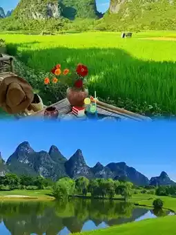 Along rice fields, karst peaks, pastoral scenery, every snap is wallpaper-worthy. Stop by the popular "Internet-famous swing" (20 RMB per ride) and the outdoor filming location of the "Liu Sanjie" live show.