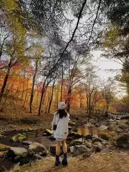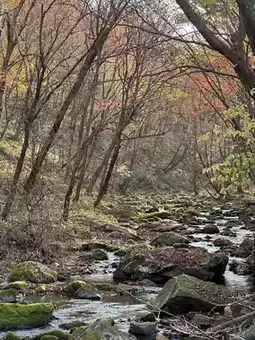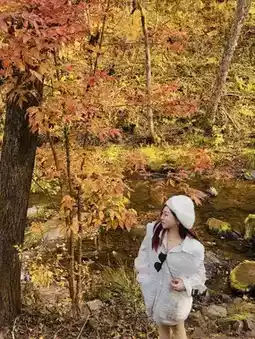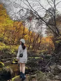 Stroll along the stream, with maple forests reflected in the water on both sides, as if walking inside an oil painting. When sunlight passes through the red leaves, the whole world softens.