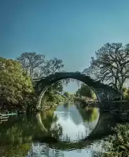 In Yangshuo, if you only visit the popular spots for travel photography, you might miss the true poetry. Fuli Bridge—this 600-year-old ancient stone bridge—has no crowded shots, only the quietest reflections of the Li River. In the morning mist, the arch bridge and its reflection in the water form a full moon, while the song of a Zhuang ethnic sister drifts past the bamboo raft. We only capture undisturbed moments: your skirt brushing the bluestone slabs, behind you the ink-wash-like karst peaks. In the scene, you seem to naturally belong to this land and water.