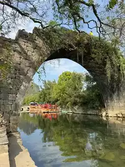 A hidden gem that needs no filters! The reflection of Fuli Bridge and the green mountains blend perfectly, as if stepping into a traditional Chinese ink painting 🌿 Free to visit and capture breathtaking bamboo raft photos!