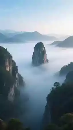 "5:30 AM at Yinggu Gorge (camera zooms into mist)