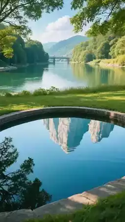 2️⃣ Reflection pool on the river (perfect symmetrical composition)